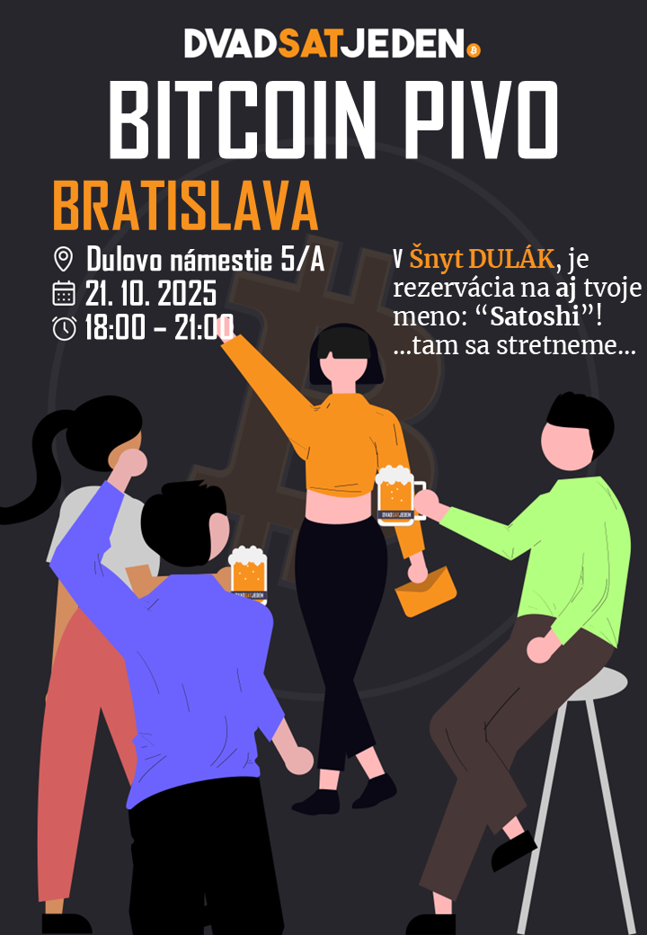 Na pravidelnú 21tku v Bratislave ale pozývame všetkých fanúšikov oranžových tém od bitcoinu, cez pivo, až kľudne napríklad k pomarančom(pokiaľ ich niekto za BTC vymieňa)…