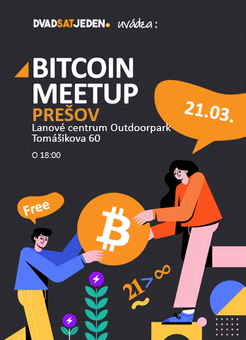 V poradí už 21vý meetup v metropole Šariša. Voľná diskusia o Bitcoine a veciach s ním súvisiacich. Pre možné zmeny sledujte dianie v skupine Dvadsaťjeden Prešov na Signali.