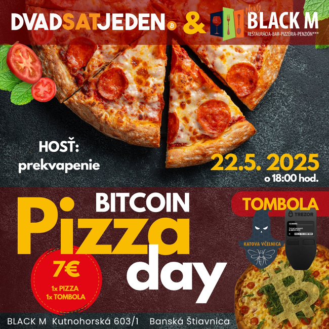 VŠETCI! Či si skúsený bitcoiner, alebo len zvedavý nováčik – čaká ťa uvoľnená atmosféra, skvelá partia a odpovede na všetky tvoje otázky. Banská Bystrica, Zvolen, Detva, Žiar nad Hronom, Levice - príďte s nami osláviť PizzaDay ...