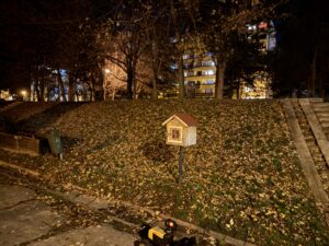 Medzi detským ihriskom a fontánou Rozprávka