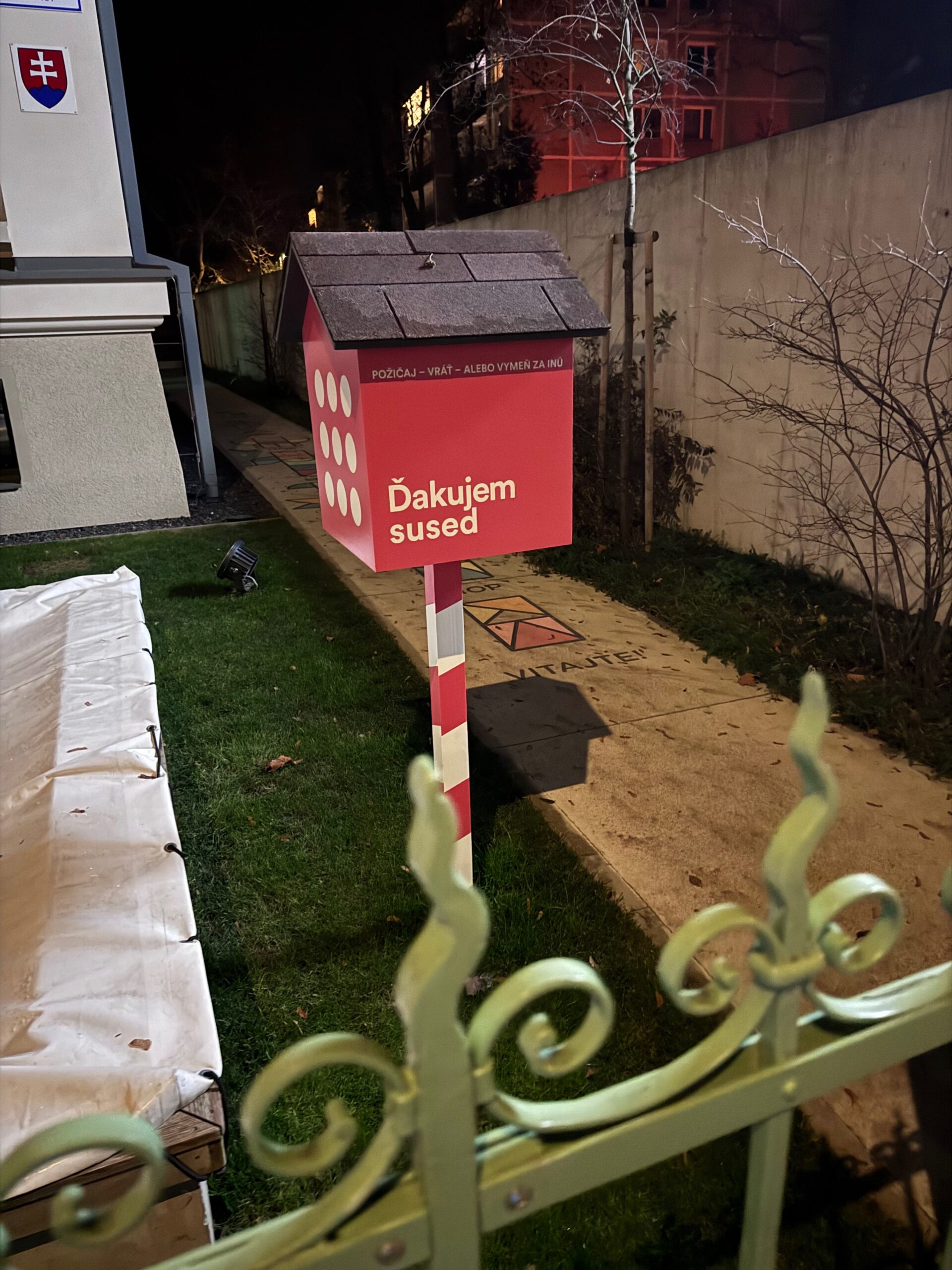 Knižná búdka sa nachádza pri Dúhovke - detskom očnom centre UVEA