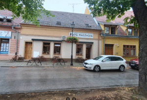V kaviarni sú poličky s knižkami, ktoré slúžia ako "knihobúdka" interiérová