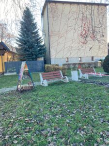 Knihobúdka sa nachádza za Kultúrnym Domom na ostrovčeku, poblíž je taktiež aj Coop Jednota.