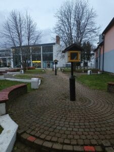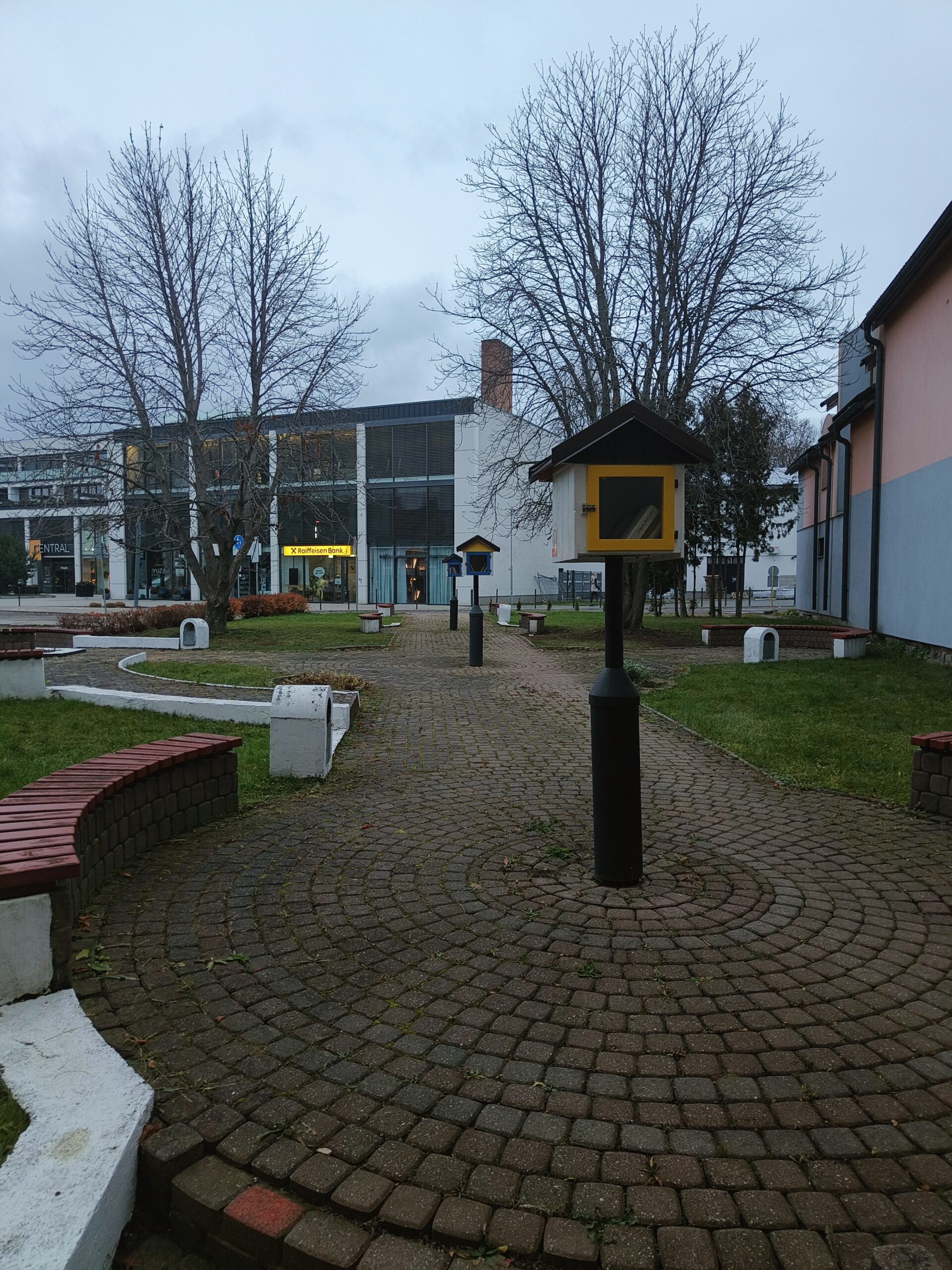 Čítareň za knižnicou, tri búdky na jednom mieste