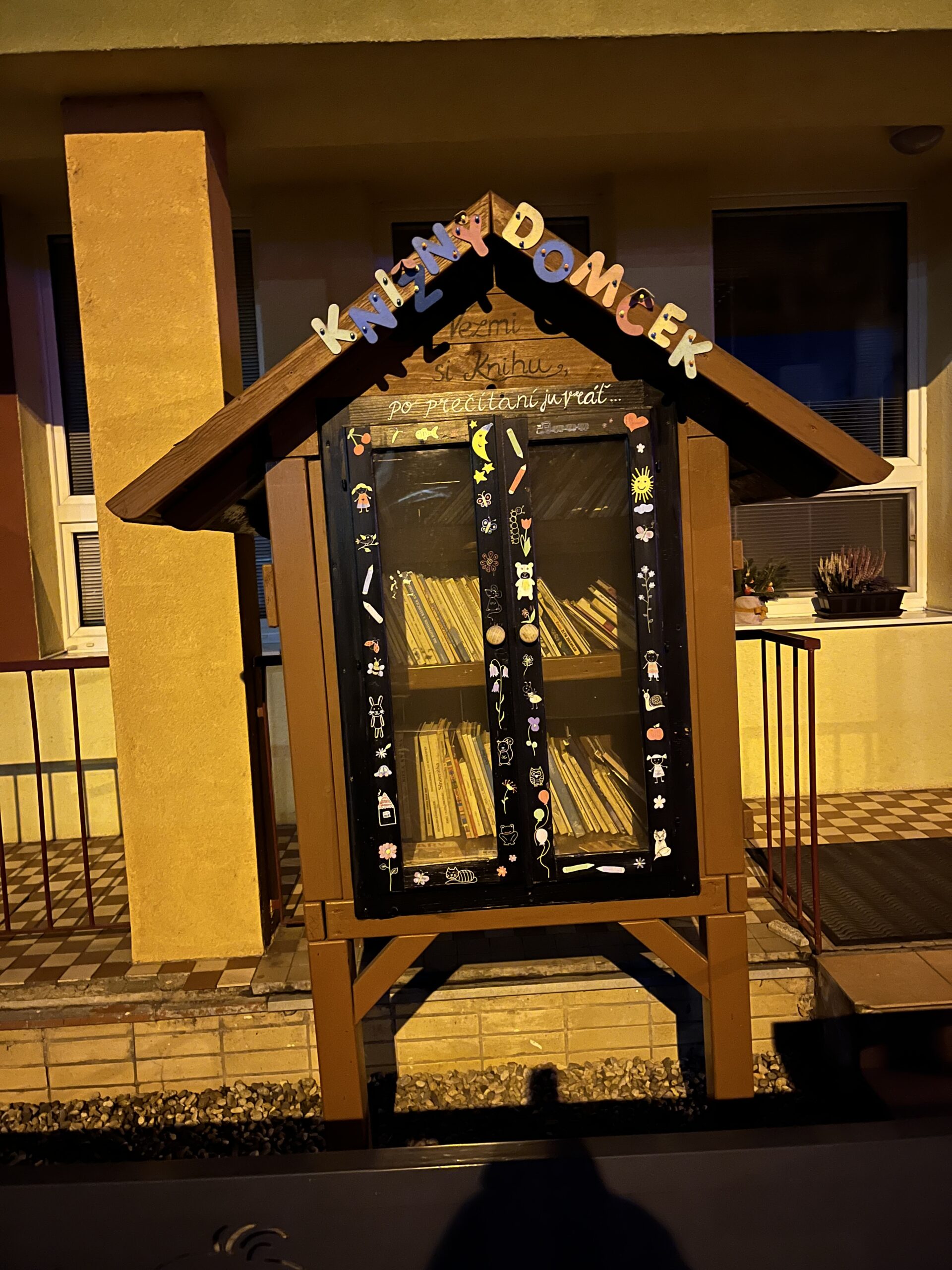 Knihobúdka za bráničkou pri vchode do materskej školy.