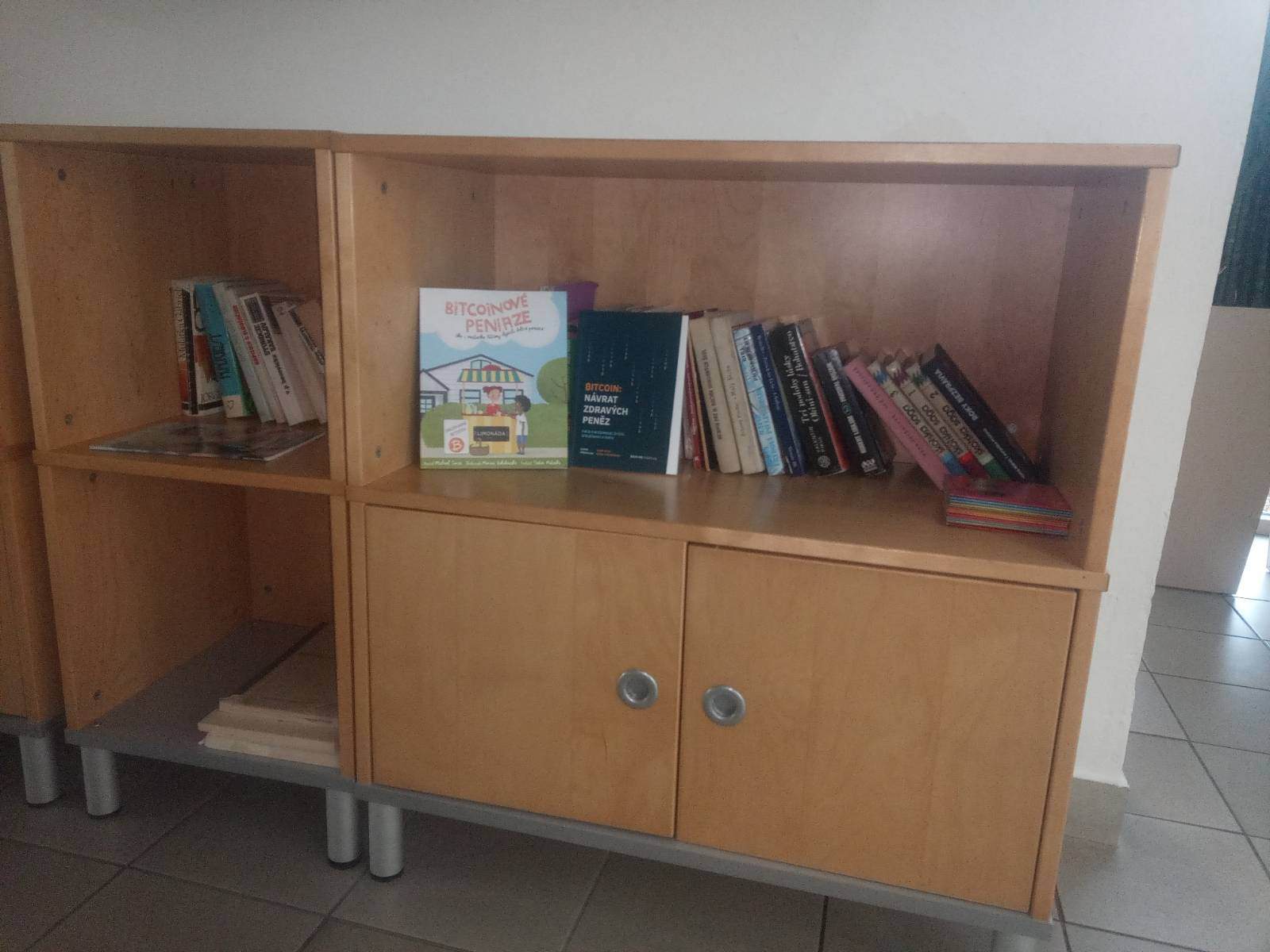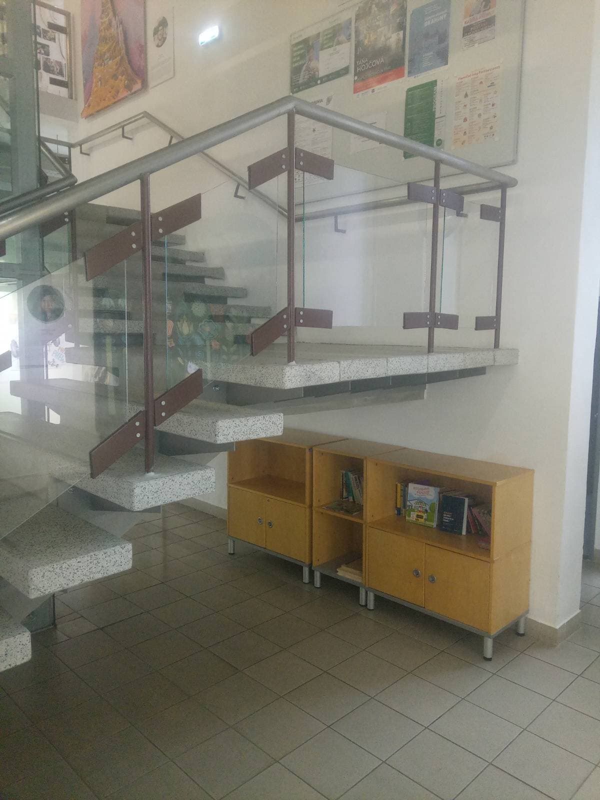 Vo vstupnej chodbe, pod schodmi je polička s knihami na výmenu