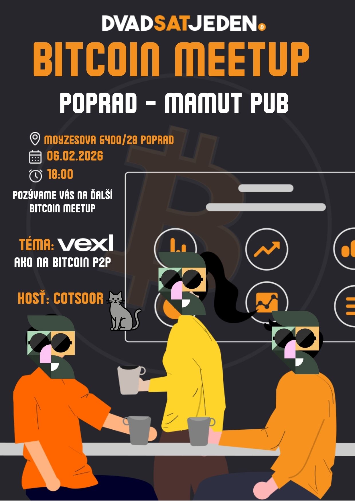 Tentokrát sa môžete tešiť na prednášku o českom projekte Vexl z dielne SatoshiLabs .🧡 Zmyslom aplikácie Vexl je používanie bitcoinu P2P (peer-to-peer), tak ako bol od začiatku navrhnutý. Bez tretích strán.