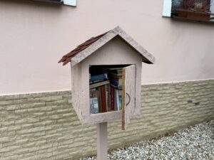 Exteriérová knihobúdka pri študentskej reštaurácii Collegium