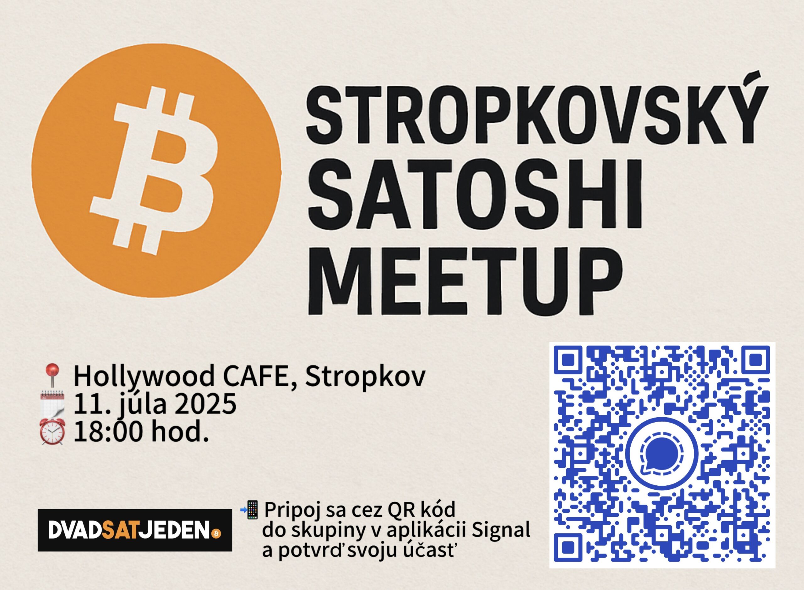 Pozývame ťa na neformálne stretnutie fanúšikov Bitcoinu – pre všetkých, ktorí sa zaujímajú o Bitcoin, decentralizáciu a finančnú slobodu. 💸